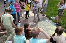 3 июня в пришкольном лагере прошёл конкурс рисунков на асфальте «У Лукоморья дуб зелёный»