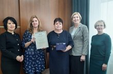 В гимназии наградили педагогов, участвующих в конкурсе кабинетов профилактики ПАВ. Грамоту и ценный подарок вручила начальник отдела образования Кировского и Московского районов Т.К. Ершова.