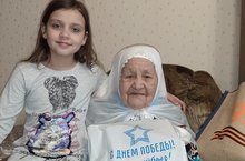 Борисова Алика из 2Д класс пришла в гости поздравить свою любимую пробабушку Галимову Розу Каримовну ей 93года, которая является ветераном тыла и труда.