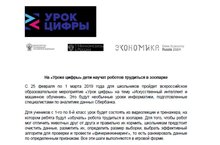 С 25 февраля по 1 марта 2019 года для школьников пройдет всероссийское образовательное мероприятие «Урок цифры» на тему «Искусственный интеллект и машинное обучение». -