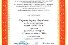 Поздравляем Зарину Фаридовну, педагога - психолога, ставшую призером районного конкурса "Учитель года - 2018" в номинации "Педагог - психолог"