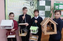 Члены Эко-отряда провели акция "Поможем птицам" изготовленные кормушки повесили на школьном дворе.