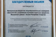 Муниципальное бюджетное общеобразовательное учреждение «Средняя общеобразовательная школа №120 с углубленным изучением отдельных предметов» Московского района г. Казани