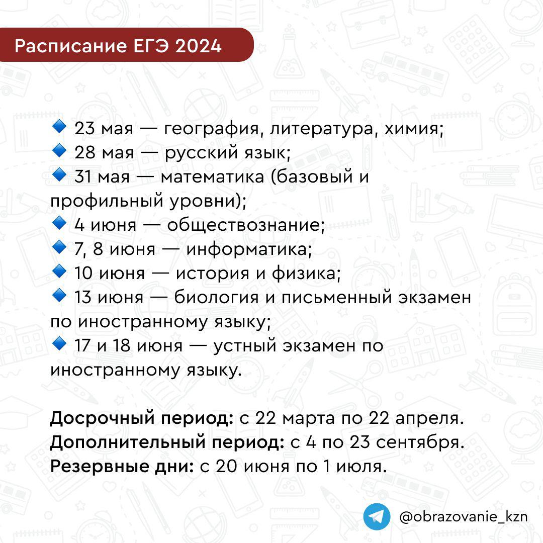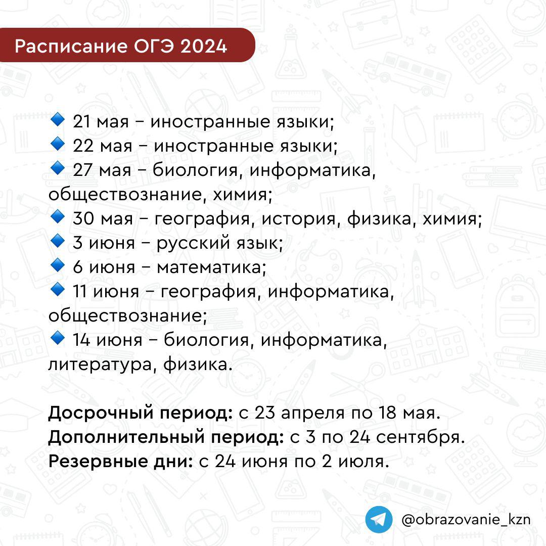 Расписание ЕГЭ и ОГЭ в 2024 г. 10.01.2024