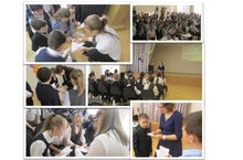 В рамке месячника школьной библиотеки был организован флеш-моб "Праздник белых журавлей". На котором для учащихся 3-4 классов была рассказана история праздника и затем они с активом школьной библиотеки сделали журавликов.