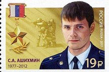 14 декабря 2012 года Сергею Ашихмину за мужество и героизм, проявленные при исполнении служебного долга, было посмертно присвоено звание Героя России.