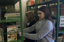 Учащиеся нашей школы помогали навести порядок в школьной библиотеке, расставляя на полках книги.