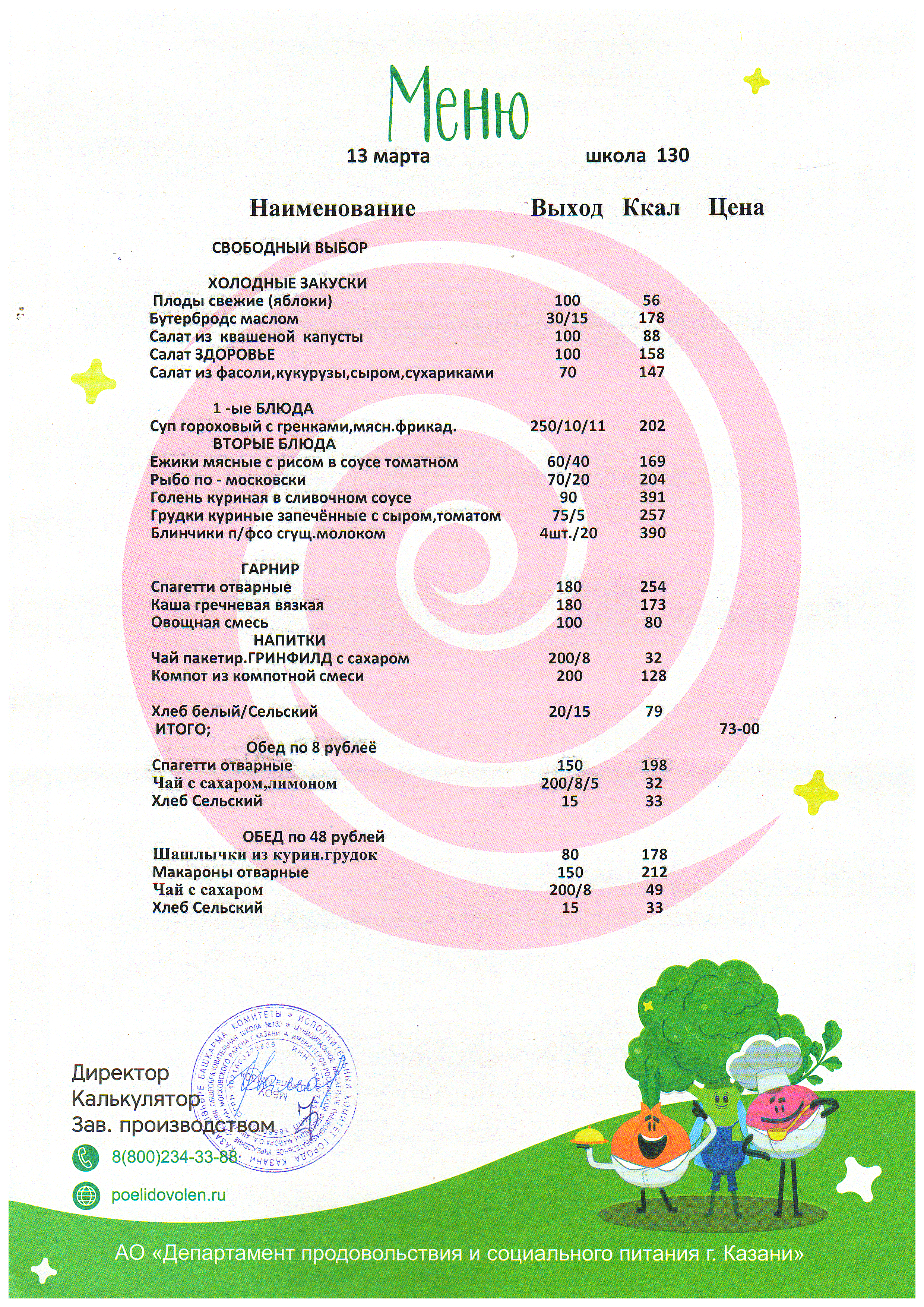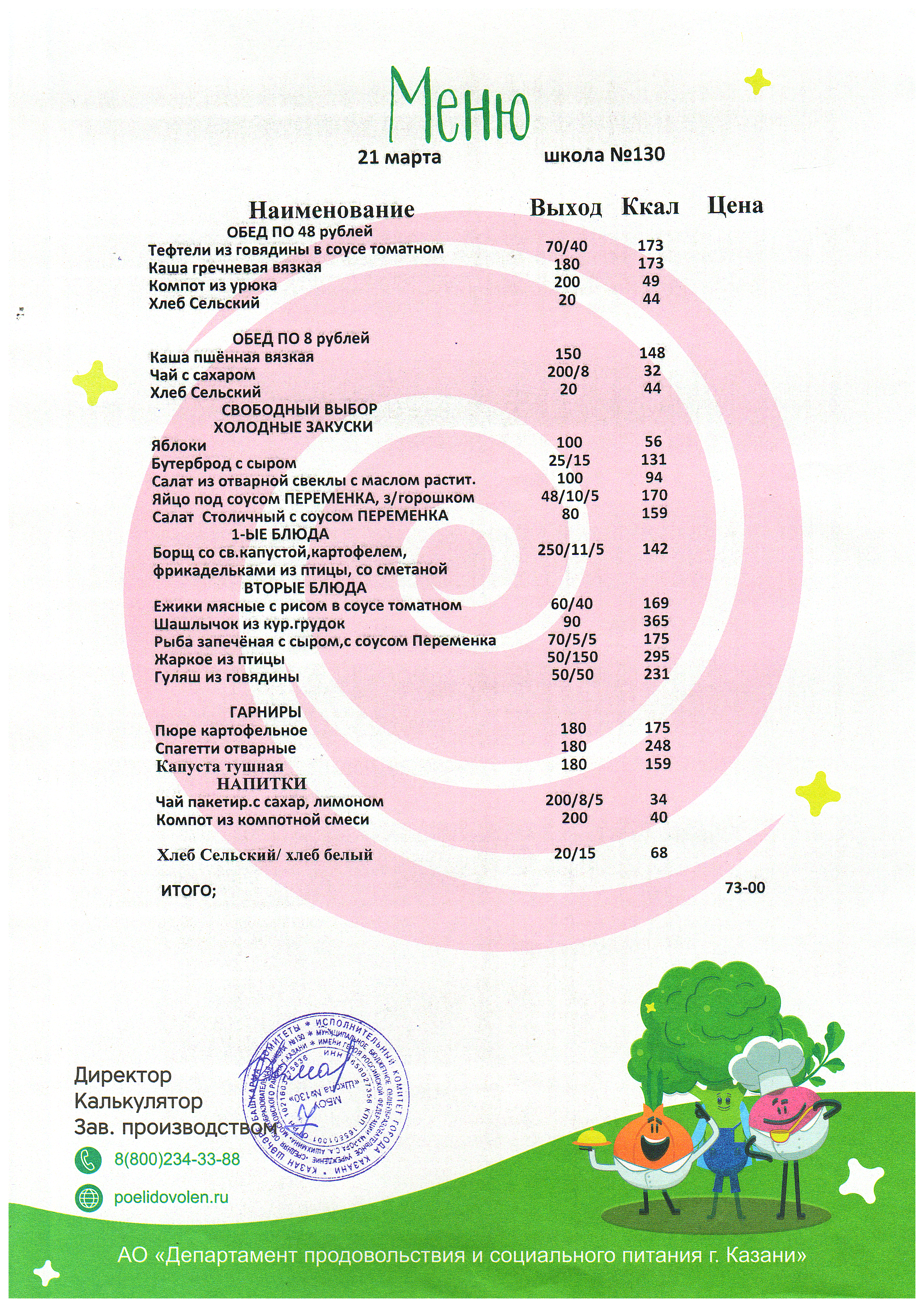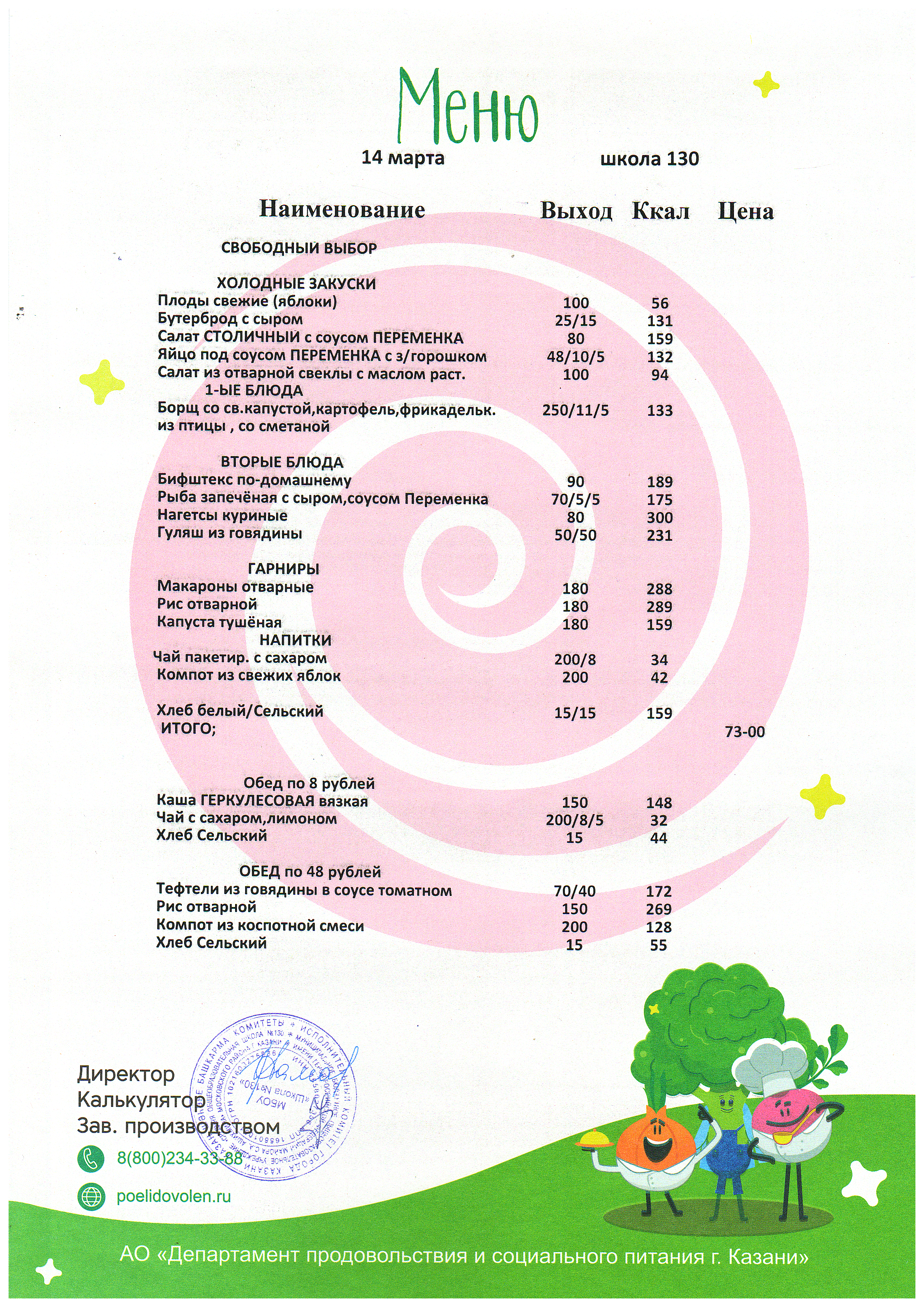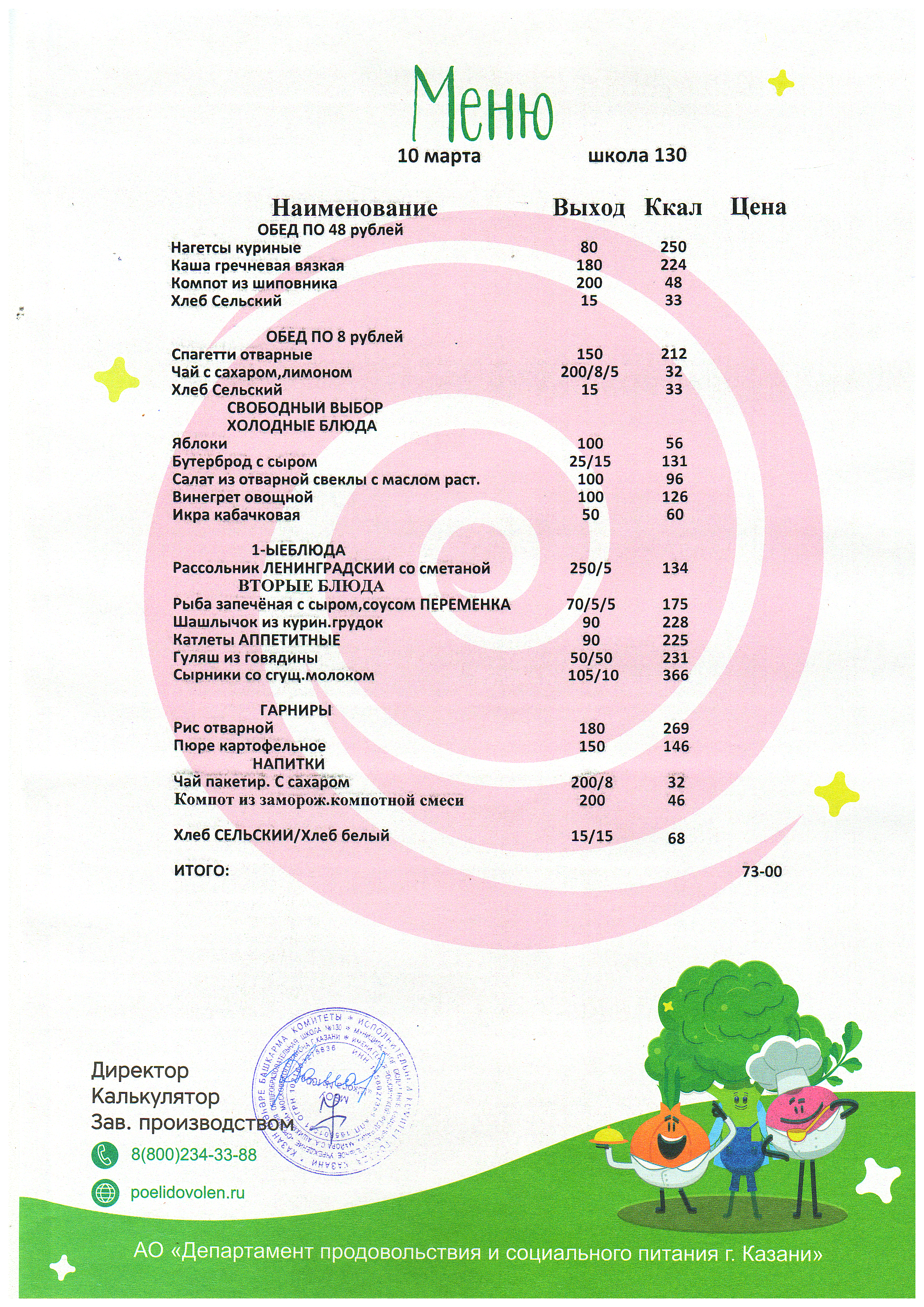Ответственная за организацию питания Нуруллина Л.Х. 8(843)571-85-43