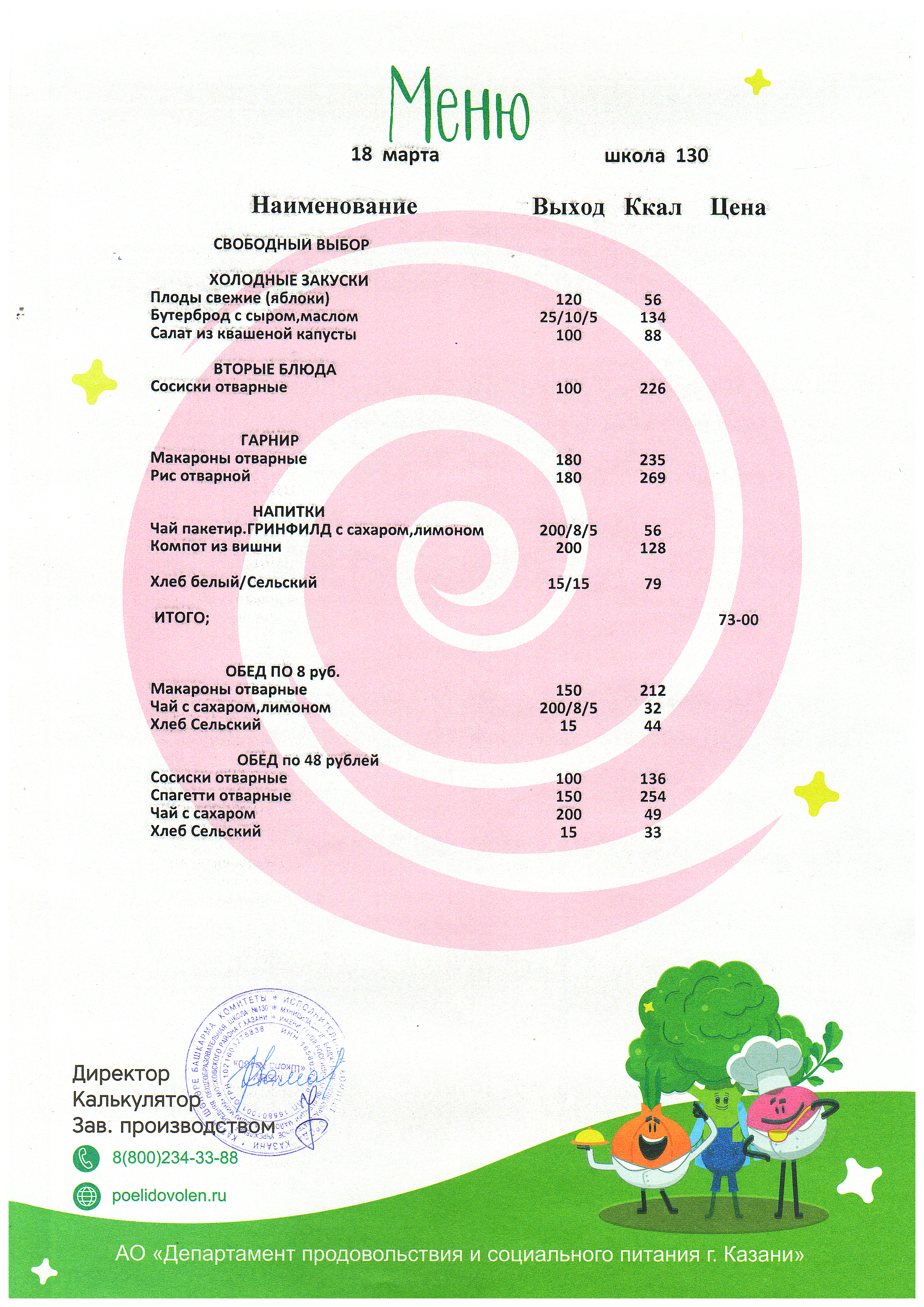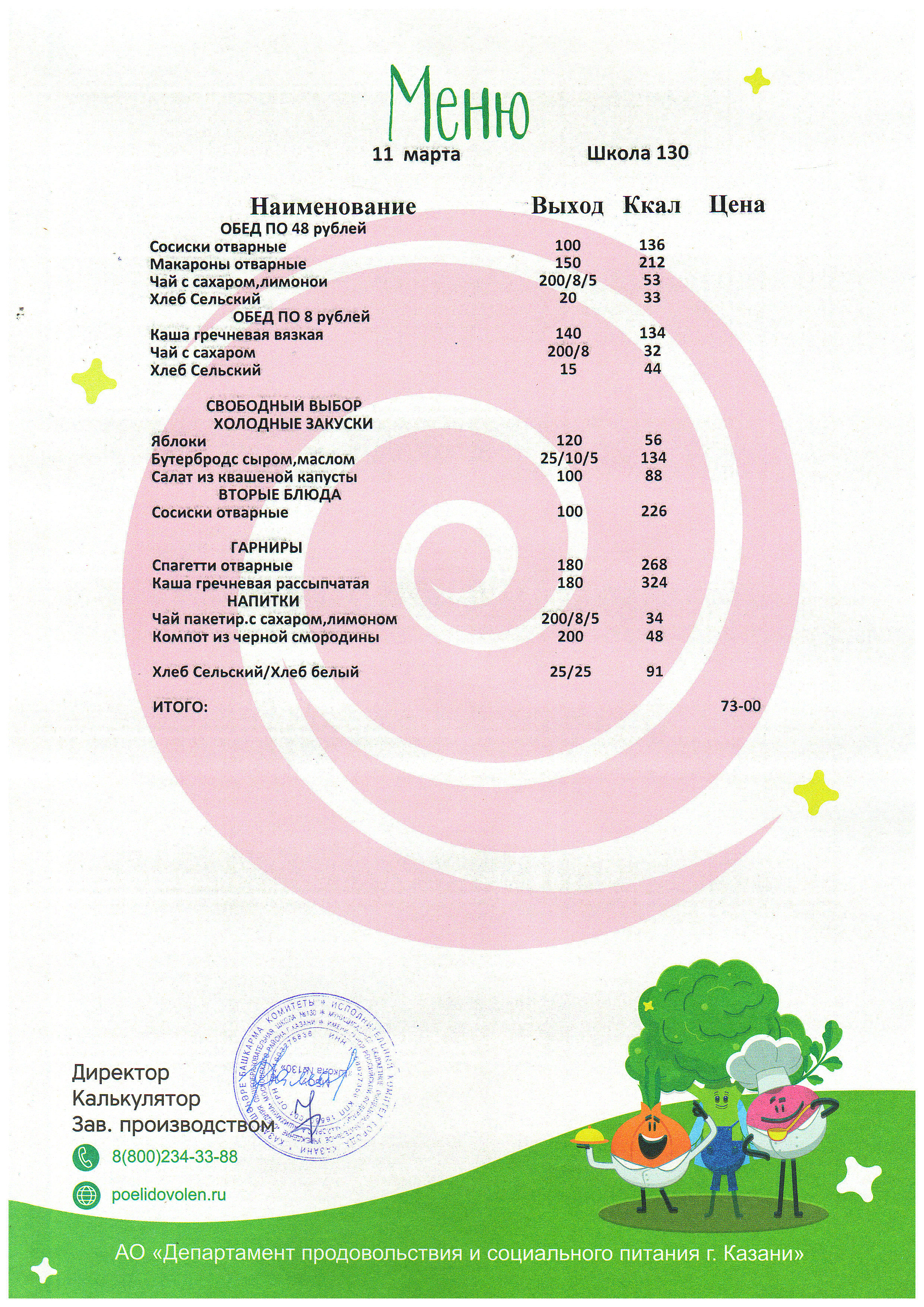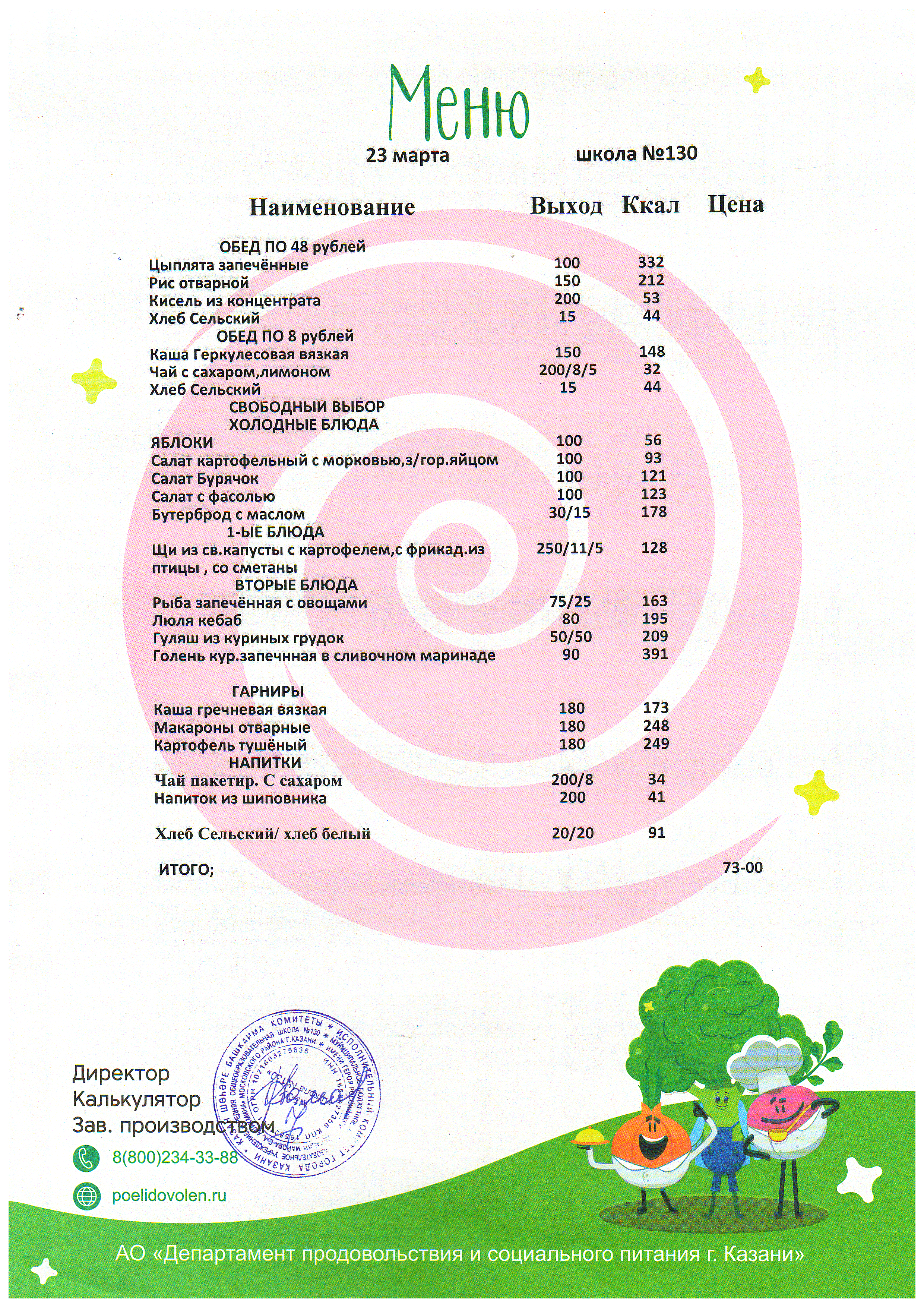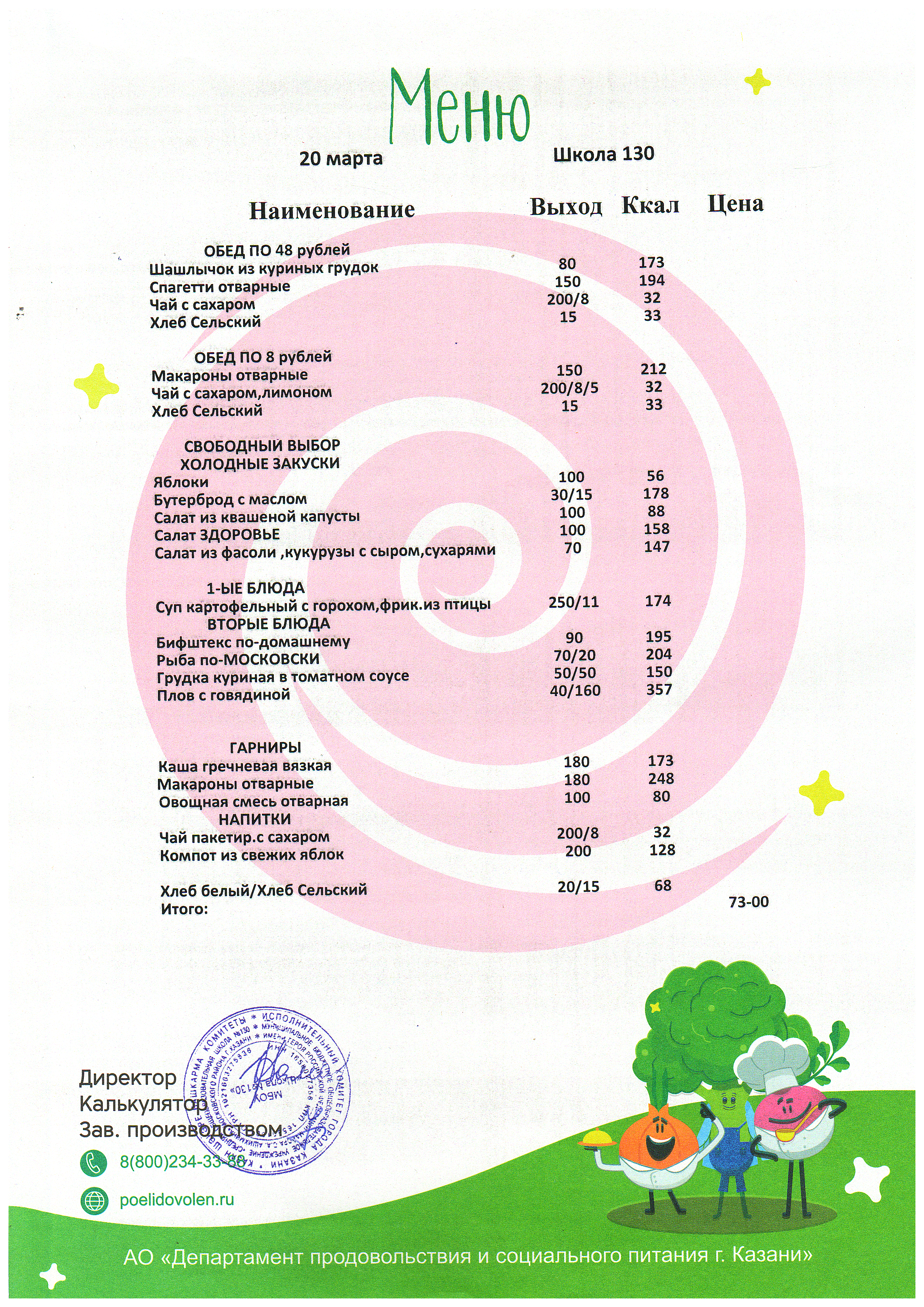 Ответственная за организацию питания Нуруллина Л.Х. 8(843)571-85-43