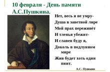 10 февраля - День памяти А.С.Пушкина. 10 нчы февраль - А.С.Пушкинны искә алу көне 10.02.2021