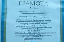 Шәһәр күләмендә уздырылган Д.В.Вилькеев исемендәге фәнни-гамәли конференциядә гимназиянең 6В сыйныфы укучысы Алсу Гыймадиева 3 нче урынны яулады. Җитәкчесе - А.И.Гарипова. Котлыйбыз!