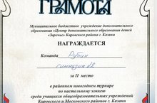 Гимназиянең "Рубин" укучылар командасы район күләмендә уздырылган өстәл хокее ярышларында 2 нче урынны яуладылар. Җиңүчеләрне котлыйбыз!