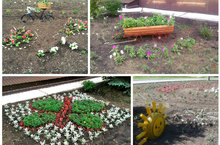 Гимназиябез территориясе аллы-гөлле чәчәкләргә күмелде. Һәр сыйныф үзенә бүлеп бирелгән җир кишәрлекләрендә тырышып матур-матур чәчәкләр үстерә.