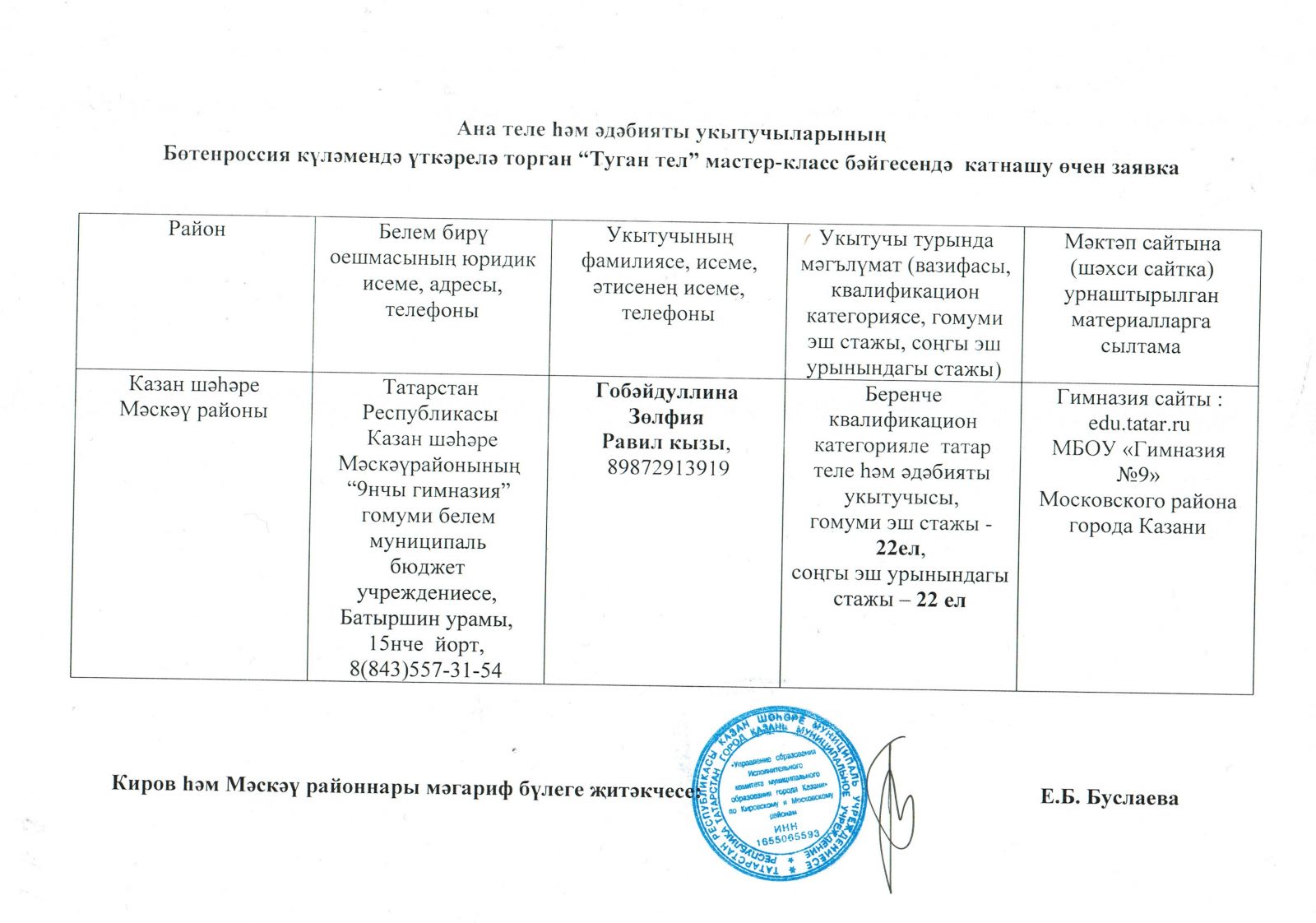 Муниципальное бюджетное образовательное учреждение "Гимназия №9" Московского района г.Казани