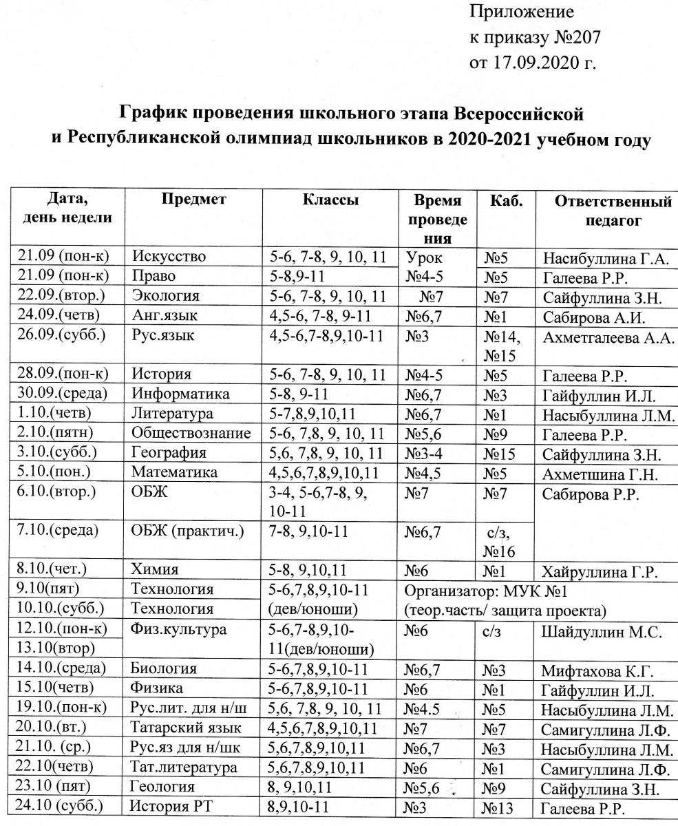 ШКОЛЬНЫЙ ЭТАП ВСЕРОССИЙСКОЙ И РЕСПУБЛИКАНСКОЙ ОЛИМПИАДЫ ШКОЛЬНИКОВ В 2020 - 2021 УЧЕБНОМ ГОДУ