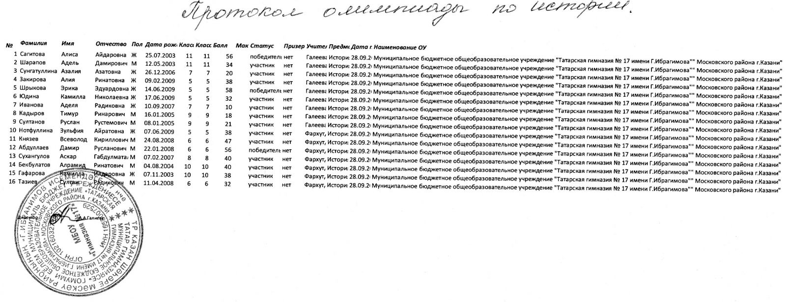 Протоколы школьного этапа олимпиад: