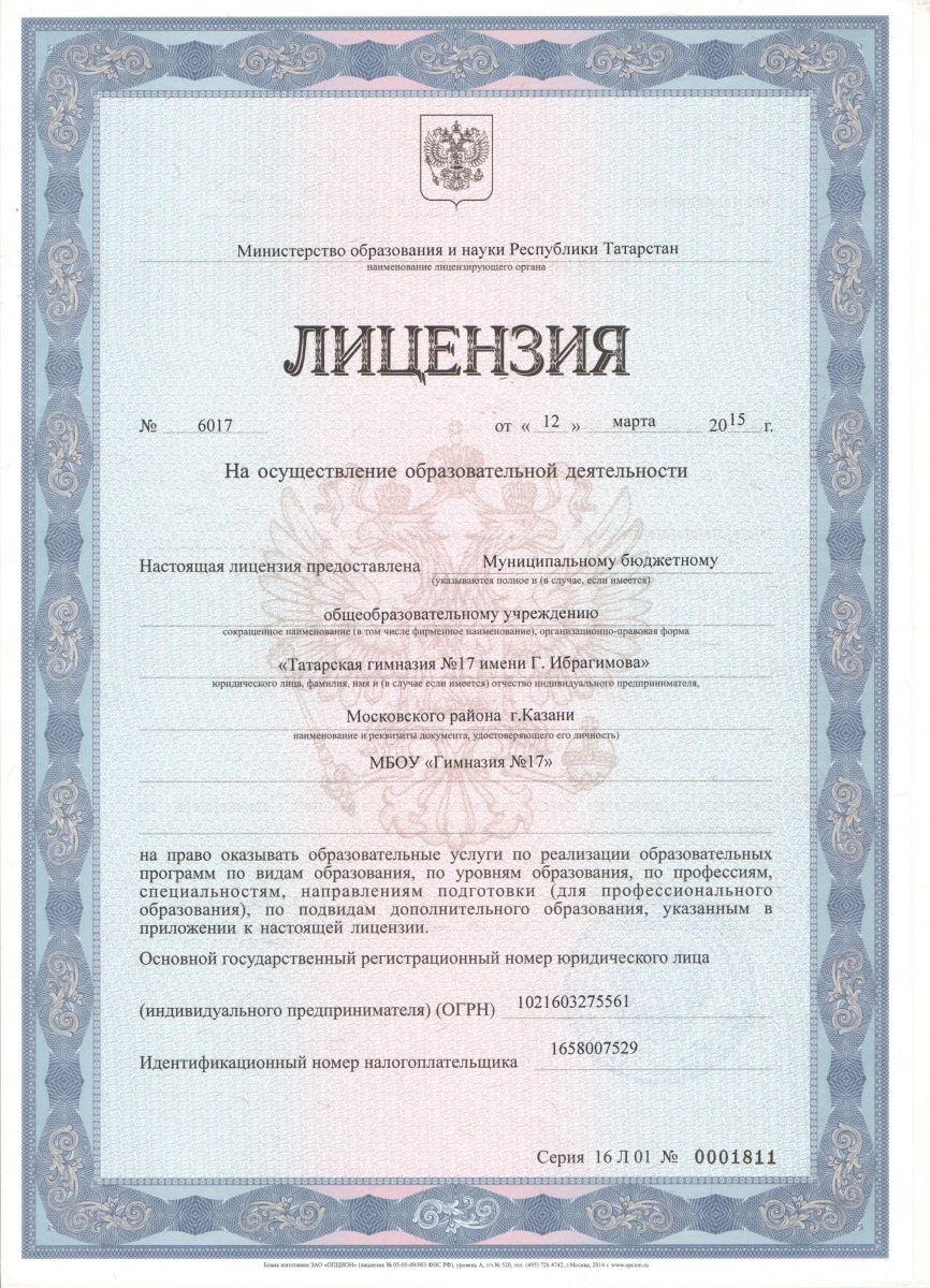 Муниципальное бюджетное общеобразовательное учреждение «Татарская гимназия №17 имени Г. Ибрагимова» Московского района г. Казани
