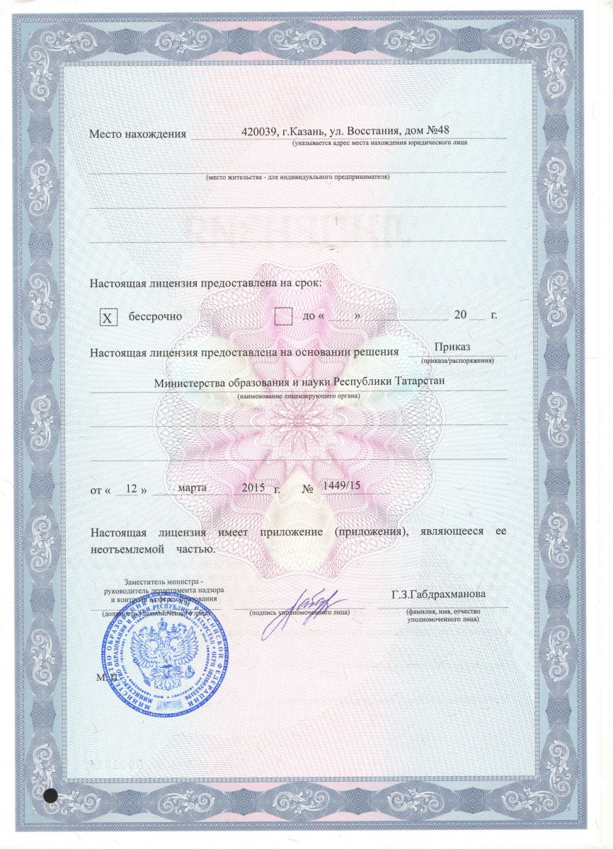 Наша Лицензия на право ведения образовательной деятельности 1 2