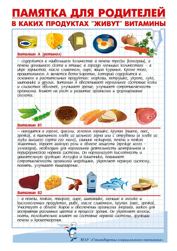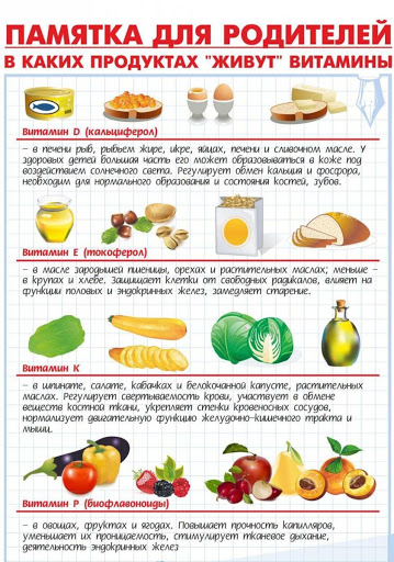 Памятка для родителей в каких продуктах "живут" витамины 1.ОТКРЫТЬ... 2. ОТКРЫТЬ...