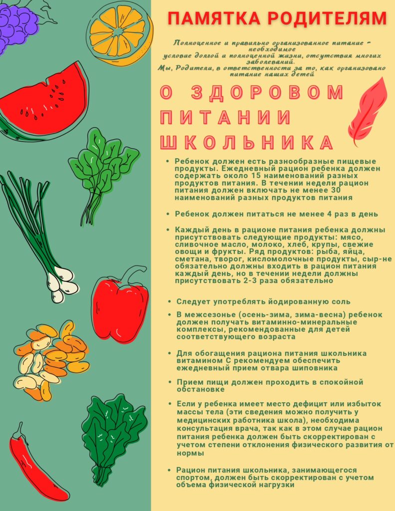 Памятка родителям "О здоровом питании школьника" ОТКРЫТЬ...