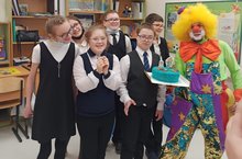 30.11.2020 г. Фонд "Радость детсва" поздравил ученика 6В класса Попкова Я. с днем рождения! Веселый клоун показывал фокусы, все дети играли и веселились. Заключительной ноткой праздника был вкусный торт.