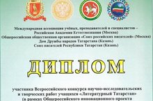 Поздравляем участников Всероссийского конкурса научно-исследовательских и творческих работ учащихся «Литературный Татарстан»(в рамках Общероссийского инновационного проекта «Литературная Россия») Рамазанова И.И и Ахметгалееву Э.Д.