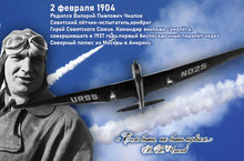 20 января (по Новому стилю – 2 февраля) 1904 года появился на свет будущий Герой Советского Союза летчик Валерий Павлович Чкалов.18-20 июня 1937 года состоялся исторический перелет по маршруту «Москва - Северный полюс – Америка». Преодолев за 56 часов расстояние 8504 километра, краснокрылый АНТ-25 под командованием Чкалова совершил посадку на военном аэродроме в окрестностях города Ванкувер на северо-западе США.