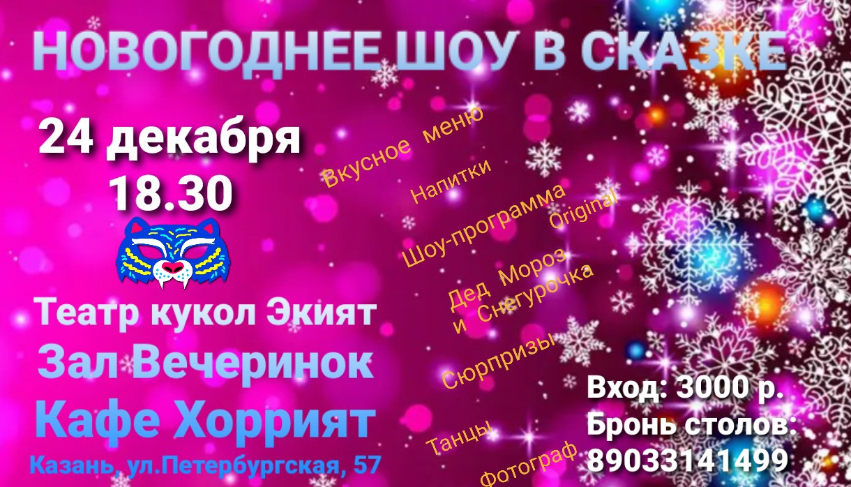 Вход: 2500р (праздничный стол, развлекательная программа, поздравления, ценные