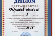ПОЗДРАВЛЯЕМ ЮРИКОВА АЛЕКСЕЯ, ЗАНЯВШЕГО I МЕСТО ВО ВСЕРОССИЙСКИХ СОРЕВНОВАНИЯХ ПО СПОРТИВНОМУ ОРИЕНТИРОВАНИЮ. Педагог Сидоров Алексей Анатольевич.