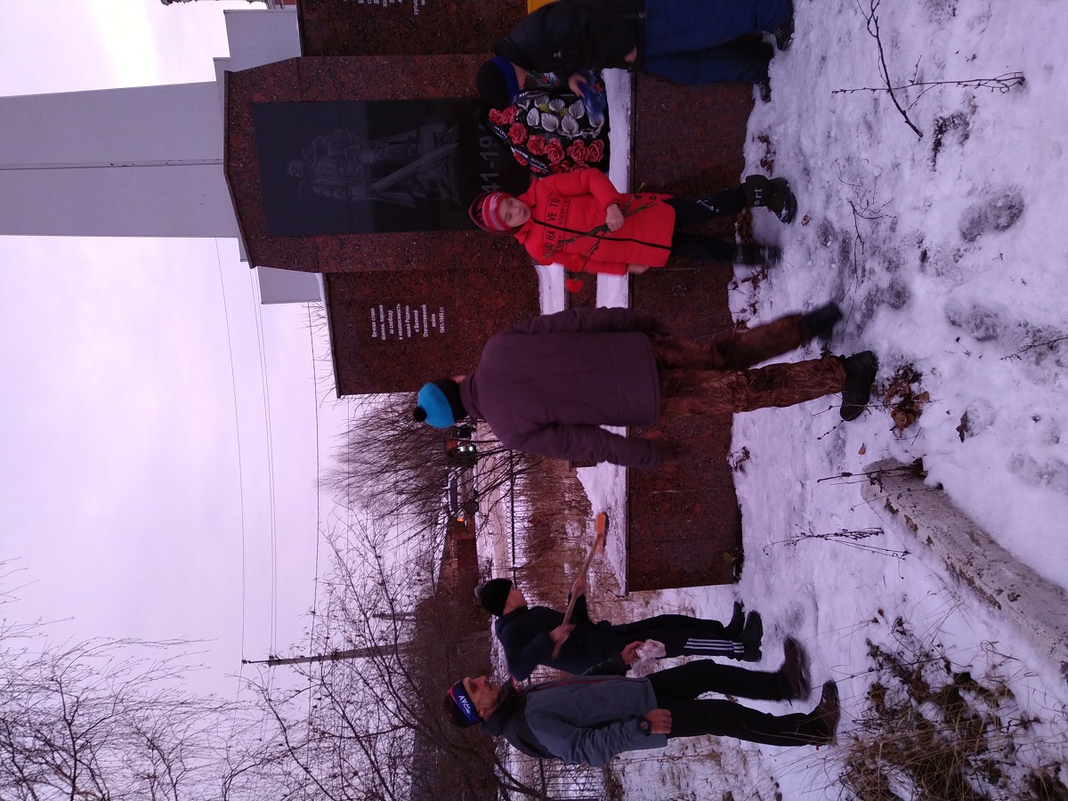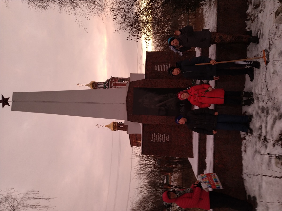 Помним наших земляков воинов-героев. 07.12.2019 учащиеся МБУДО  ДДЮТиЭ Московского р-на г.Казани приняли участие в очистке от снега и льда, уборке территории от мусора и возложении цветов к памятнику павшим воинам, призванным на фронт с пос.Юдино.