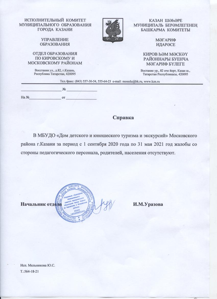 Справка об отсутствии жалоб состороны родителей, педагогов