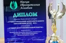 С 30 октября по 1 ноября в городе Санкт-Петербурге проходила II Всероссийсская конференция "Перспективы развития системы воспитания и дополнительного образования детей". В рамках конференции состоялось чествование лауреатов Всероссийского конкурса "Лучшее учреждение дополнительного образования детей - 2015". Центр внешкольной работы получил Кубок и Диплом лауреата в номинации "Лучший центр внешкольной работы". Директор Богомолова Рамзия Мунавировна - награждена памятным знаком "Эффективный руководитель - 2015".