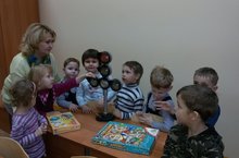 Занятие по развитию речи в школе раннего развития «Филиппок» началось со знакомства с новым дорожным знаком - «Пешеходный переход»: