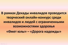 Творческий онлайн-конкурс среди инвалидов и людей с ограниченными возможностями здоровья «Өмет юлы» – «Дорога надежды» 01.12.2020