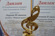 26 апреля ансамбль "Нотный прибой" и дуэт "Девятый лад" обьединения "Классическая гитара" приняли участие в Республиканском конкурсе "Форте". Поздравляем ребят и педагога Кибардину Наталью Михайловну с успешным выступлением и достойным результатом!