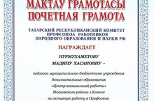 День профсоюзов РТ отметили председатели профсоюзных организаций образовательных учреждений Кировского и Московского районов Казани, посетив 20 сентября город Чистополь. Наш профсоюзный лидер – Нурмухаметова Мадина Хасановна, была в их числе. За отличную работу ей была вручена Почётная грамота Татарского республиканского комитета профсоюза работников образования. Так держать! Поздравляем от души!