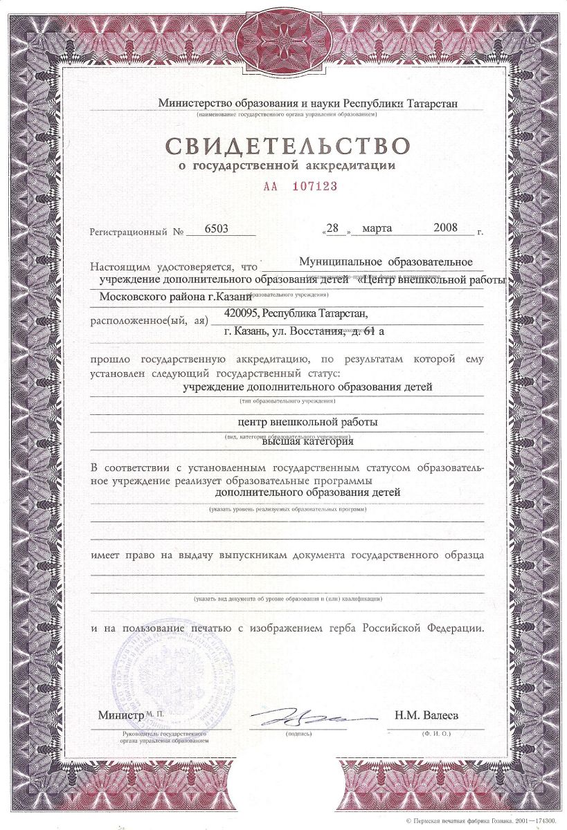 Свидетельство о государственной аккредитации
