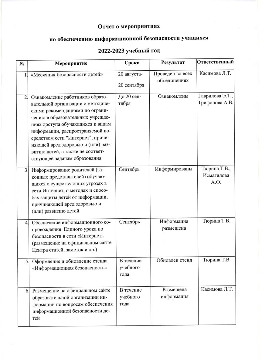 Отчет о мероприятиях по обеспечению информационной безопасности