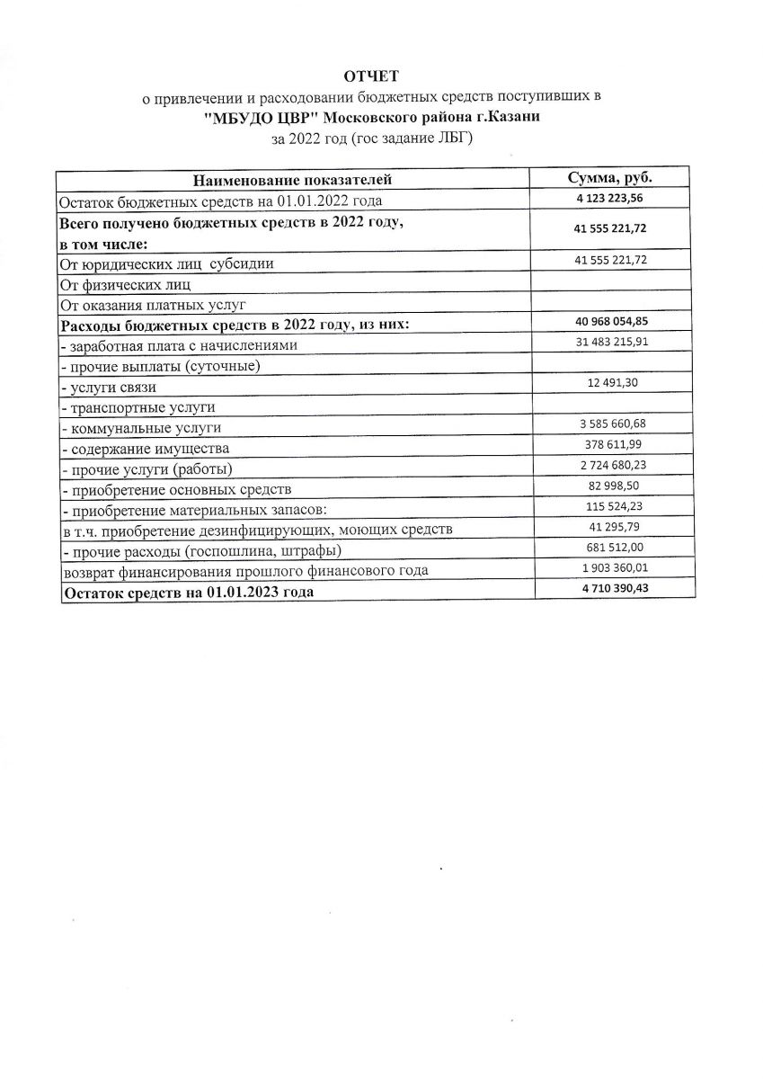 Отчет о привлечении и расходовании бюджетных средств в 2022 (госзадание ЛБГ)