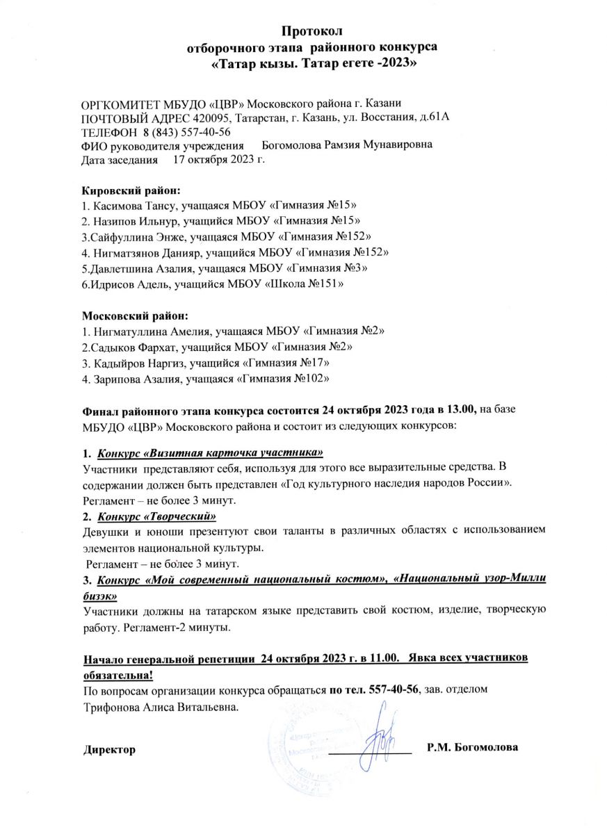 протокол конкурса