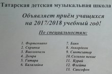 Татарская детская музыкальная школа № 32 объявляет прием учащихся на 2017/2018 учебный год. Прослушивания состояться 1, 4, 5 сентября с 10.00-12.00.