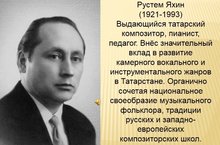 16 августа 2017 года - 96 лет со дня рождения Рустема Яхина композитора, пианиста, народного артиста, автора музыки Госудаственного гимна Республики Татарстан, Лауреата Государственной премии им. Г.Тукая.