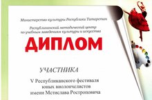 27 февраля 2016 года в ДМШ № 5 прошел V Республиканский фестиваль имени М. Ростроповича, где с успехом выступила учащаяся нашей школы Сафина Камилла (преподаватель Марданова Г. Р.).