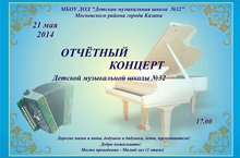 21 мая 2014 года в концертном зале ДМШ №32 состоялся Отчётный концерт ДМШ №32 (на базе Гимназии №2). Концерт был посвящён 10-летию нашей школы! В концерте было 14 номеров. Ребята играли классические произведения татарских, зарубежных композиторов и современные композиции. Талантливые обучающиеся, участники конкурсов различных уровней, были награждены грамотами (Шакулова Рената, Зайнутдинова Залия, Латыпова Диана, Земдиханова Руфина и др.). Благодарственные письма были вручены родителям. Ведущая концерта Гульназ Саткоева провела концерт с хорошим весенним настроение, с большой любовью к зрителям.