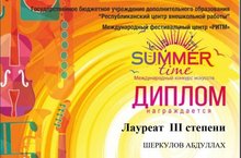 1-25 июня 2021 г. в Казани состоялся Международный конкурс искусств «Summer time». В конкурсе ученик ТДМШ №32 Шеркулов Абдуллах (преп. Биктимерова А.И.) стал Лауреатом 3 степени.