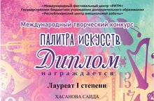Хасанова Саида, преп. Валиахметова А.Н., стала Лауреатом 1 степени,