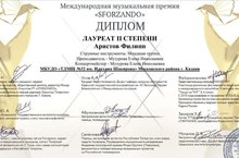 Аристов Филипп, преп. Музурова Елена Николаевна, стал Лауреатом 2 степени,