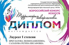 В апреле 2021 года прошел Всероссийский конкурс искусств «Территория творчества», в котором Дуэт преподавателей нашей школы Ирбулатова Лилия Камилевна, Салахова Регина Инсафовна стал Лауреатом 1 степени. Дуэт выступил с новыми сочинениями Гульнары Тимербулатовой, пьесами для двух фортепиано "Праздничная" и "Скерцо одного дня", созданными в рамках проекта Гульнары Тимербулатовой "Творческая мастерская современного композитора. Музыка детям".