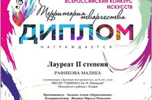Поздравляем РАФИКОВУ Малику с присуждением Лауреата 2 степени!