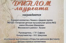 В декабре 2020 года в Казани прошел Открытый районный фестиваль детских хоровых коллективов "Звонкие голоса", на котором Хоровой коллектив "Чишмә", руководитель Сафина Гульнара Рафгатовна, и Младший хор «Соловушки», руководитель Бикбулатова Нелли Рустемовна, за успешное выступление были награждены Дипломами лауреата.